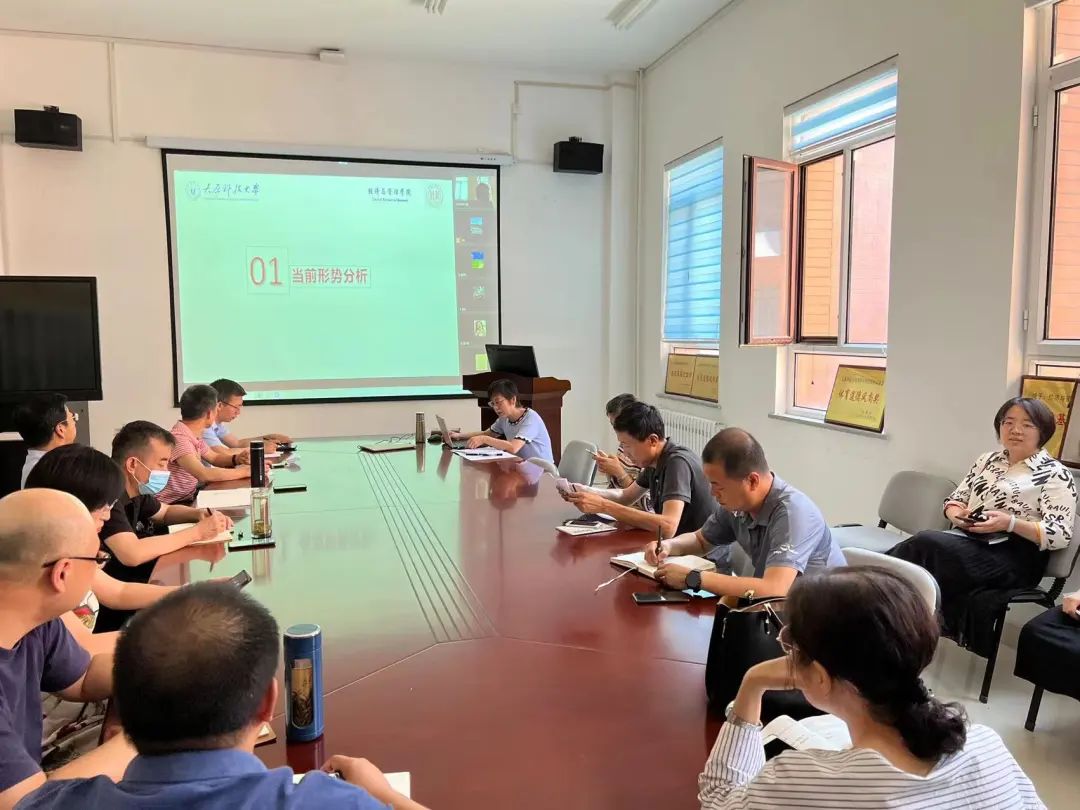 6月17日下午,新葡的京官网召开学院重点工作推进会,围绕落实学校“十四五”发展规划和本年度目标管理任务,分析形势,提出对策,就重点工作的落实推进作出部署。学院党委书记张文杰、院长乔彬、院党委副书记吴锋、副院长刘传俊、副院长王文利出席会议,会议采用线上线下方式进行,学院全体教职工参加。
