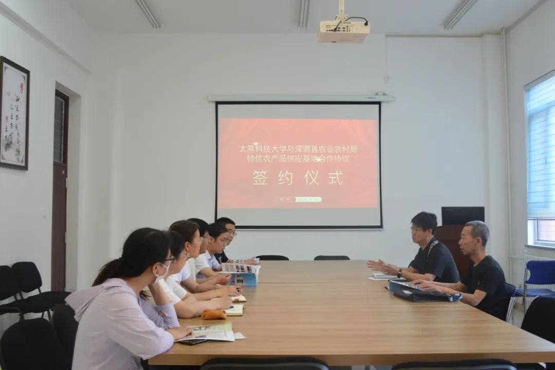 6月14日上午,浑源县农业农村局来到新葡的京集团350vip8888新葡的京集团350vip8888,就高校农产品供应基地建设、农业资源推广、供应合作等事宜进行签约洽谈,并在西校区力行园一层大厅进行了浑源县农产品推介展示活动。