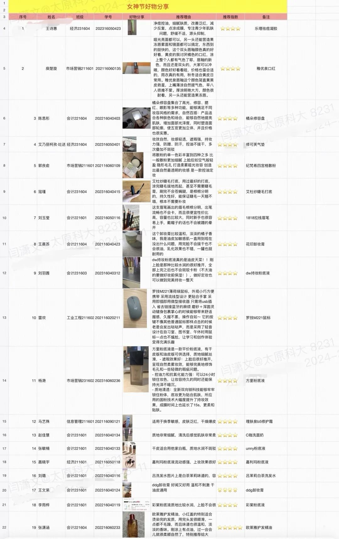 本次活动内容分为了“好物分享,避雷拔草”两个环节,让女同学们以自身经历为基础,分享购物心得,互相提醒避免雷区,形成和谐融洽的相处氛围下,让每个人都收集到了丰富的物品信息,有效提高了健康使用物品的意识,并加强了女性之间的团结。这一环节不仅提升了女性同学的幸福感和归属感,更让她们通过共同经历紧密团结,勇于创新,展现了女性独有的力量。