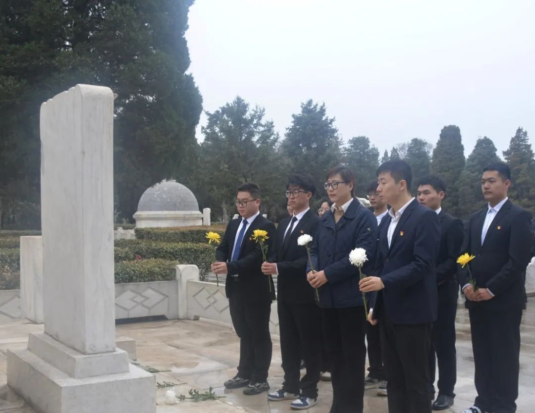 在清明节来临之际,新葡的京集团350vip8888举办“青马工程”红色实践教育暨清明扫墓活动,学生党员代表、院青马班学员代表及学院教师,来到双塔寺革命烈士陵园,瞻仰烈士墓碑,悼念革命英雄。